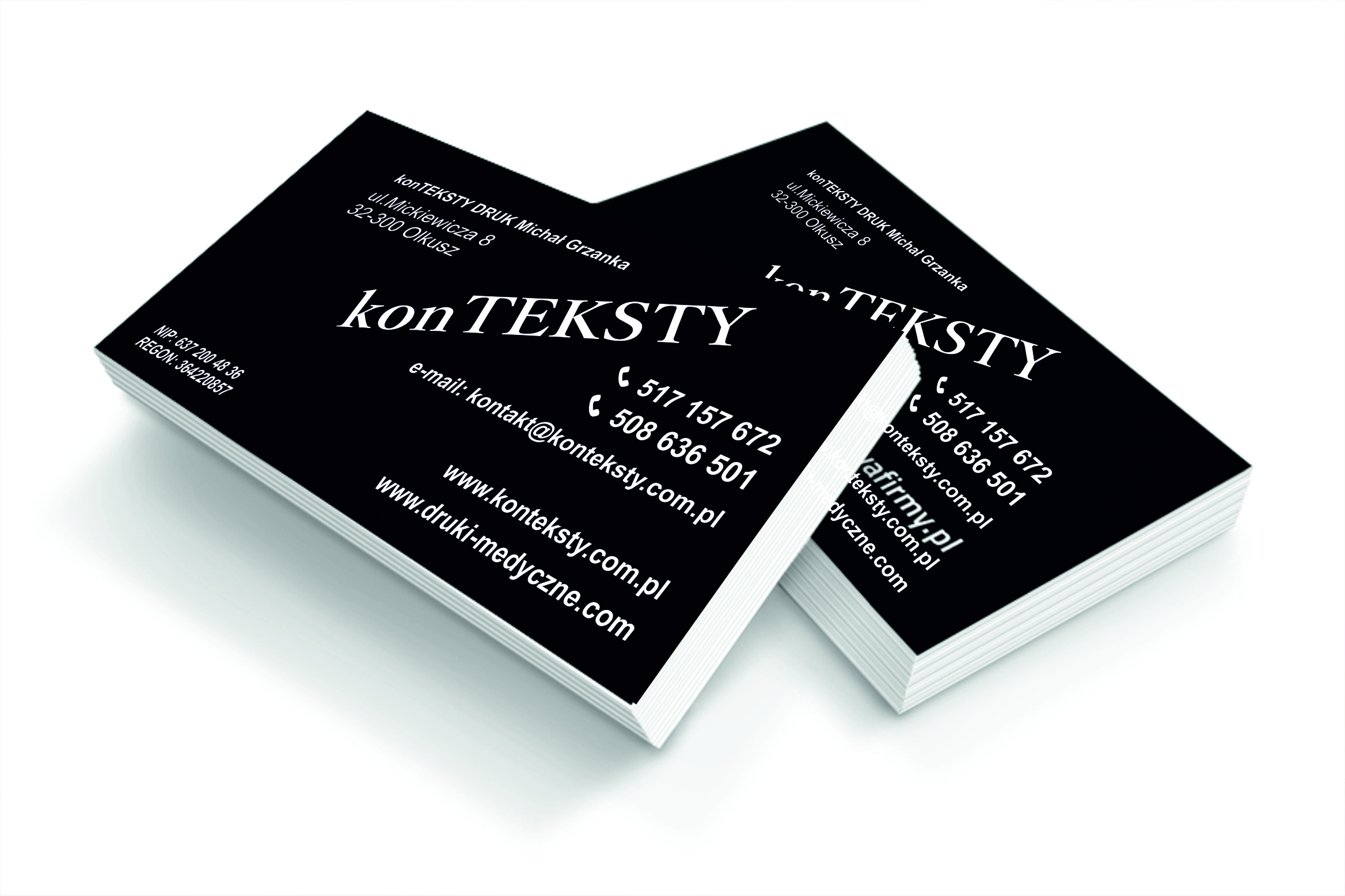 Wizytówki stanowią niezbędny element podczas nawiązywania kontaktów z klientami, ułatwiając pozyskiwanie nowych kontrahentów oraz informując kim jesteśmy oraz czym zajmuje się nasza firma.